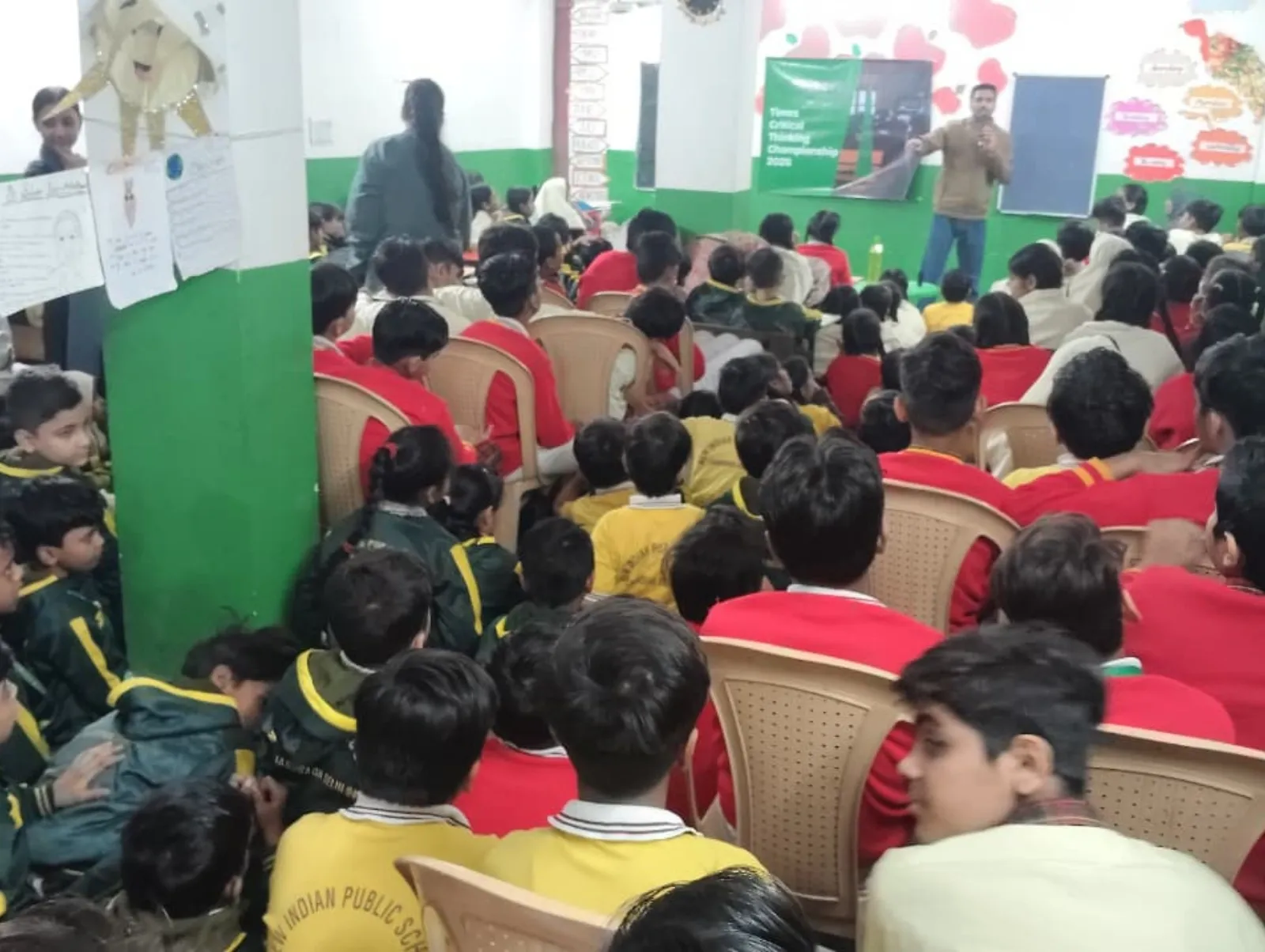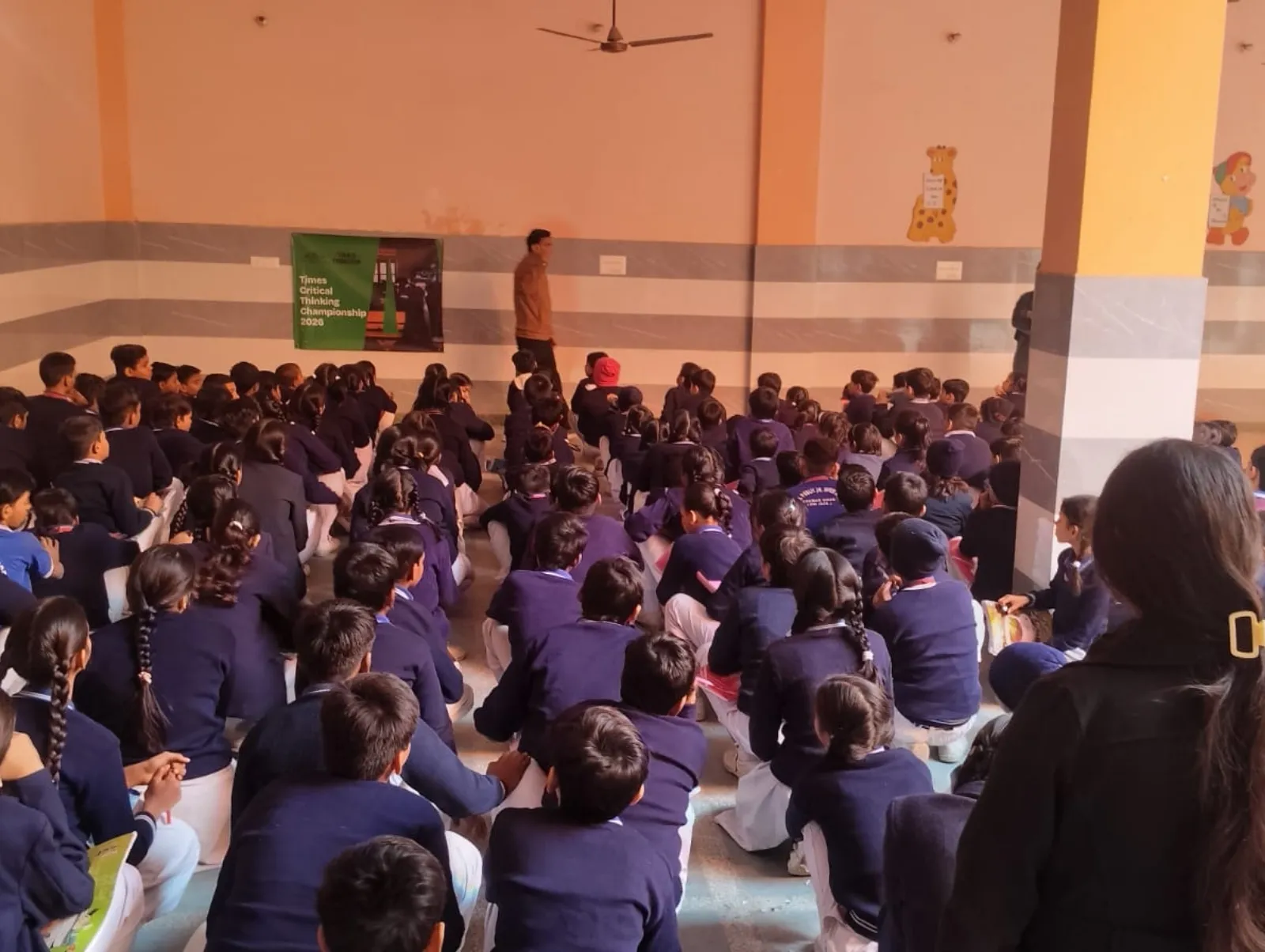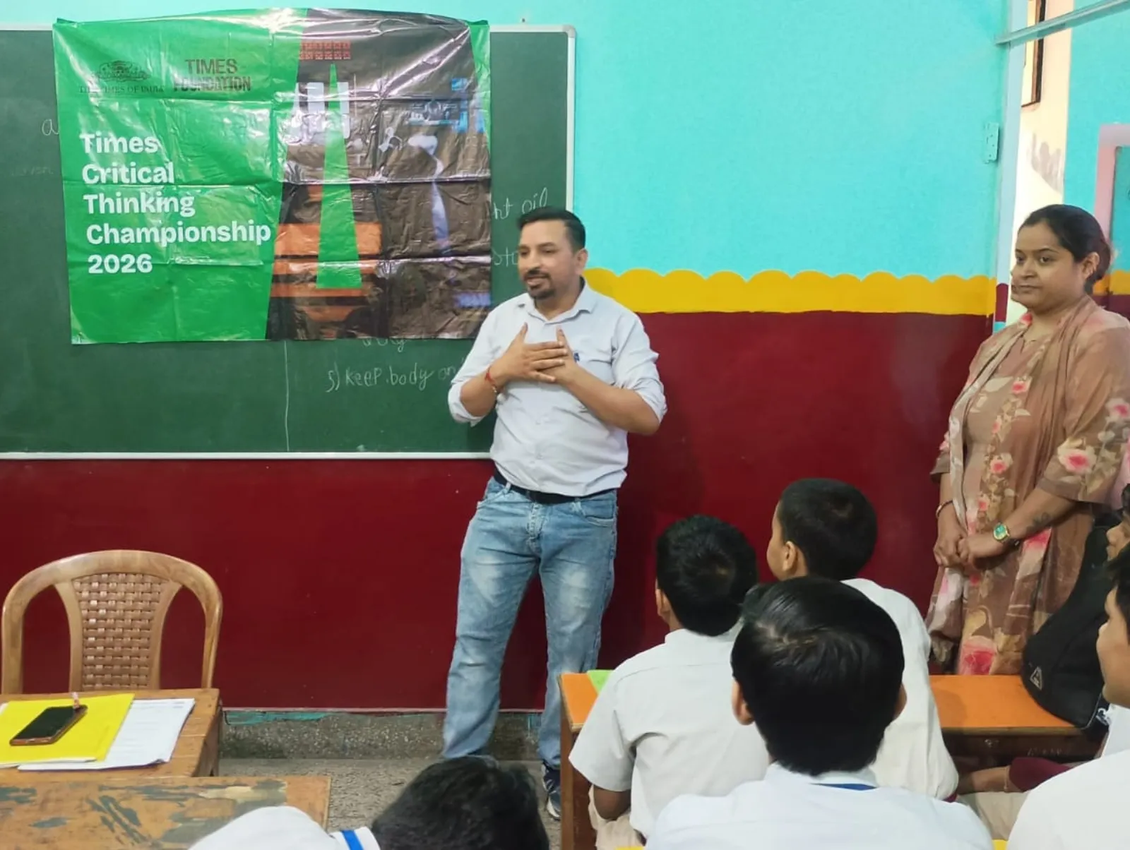 A trainer speaks to students in a colourful classroom during a Times Critical Thinking Championship 2026 session.